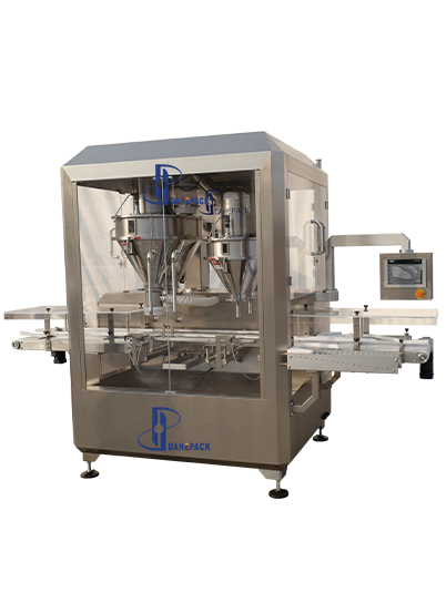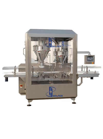 該設(shè)備是我公司在粉末罐裝領(lǐng)域長期實踐的基礎(chǔ)上,摒棄原有轉(zhuǎn)盤式喂罐設(shè)計理念,而全新設(shè)計的一款四工位罐裝機。雙排主輔雙頭充填系統(tǒng)和喂罐系統(tǒng),保證了高精度同時又去除了轉(zhuǎn)盤式喂罐系統(tǒng)清理不便的缺點。主要完成高精度充填計量工作??膳c其它設(shè)備配套組成整套罐裝流水線,適用于罐裝奶粉、蛋白粉、雞粉、葡萄糖、米粉、可可粉、固體飲料等。