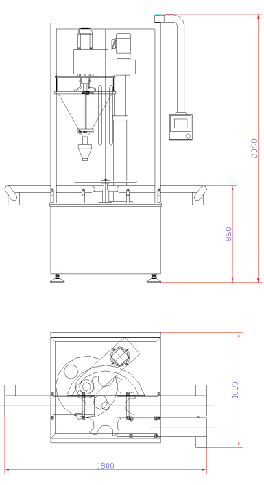 氣動托罐裝置,保證充填時物料不灑出容器外。