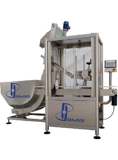 整機(jī)主體不銹鋼結(jié)構(gòu),有機(jī)玻璃外罩,可打開(kāi); PLC控制、觸摸屏人機(jī)界面顯示,操作簡(jiǎn)便; 儲(chǔ)蓋料斗底部的爬坡輸送帶自動(dòng)理蓋,方向?qū)Φ南蛏咸?,方向反的自?dòng)跌落到儲(chǔ)蓋料斗;